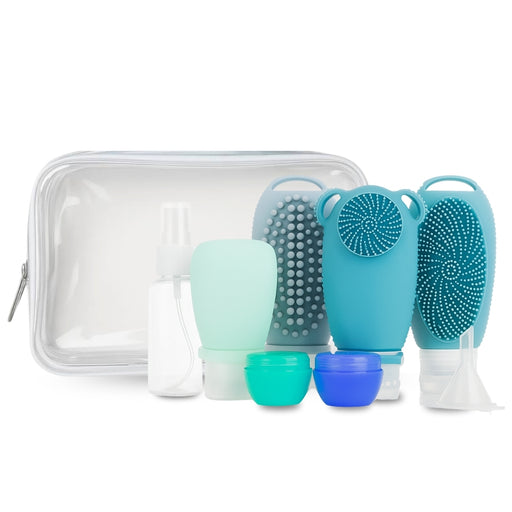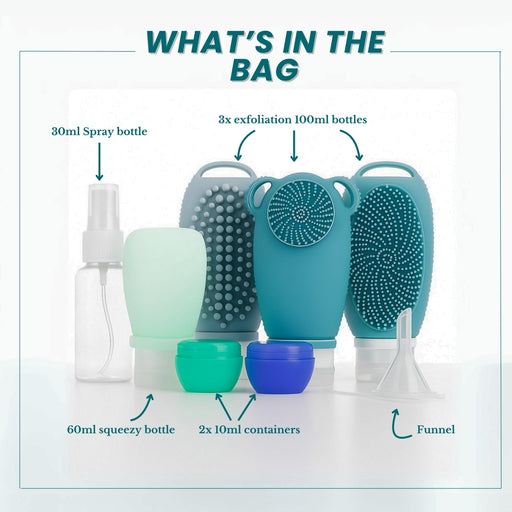 View full detailsLeak-Proof Silicone Travel Bottle Set - TSA-Approved Toiletry Kit with Funnel. Jars & Spray Bottle (9-Piece Set) Travel smart and stay organise...